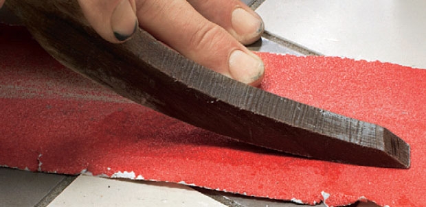 Gummifogar av silikon, MS-polymerer och polyuretan bör formas med fogsticka. Skjut den genomfuktade och nyslipade stickan framåt så att fogmassan trycks ner i fogen och överflödig massa skärs bort. Därefter slätar du till fogen genom att dra fogstickans lätt runda undersida åt andra hållet.