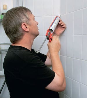 Fyll fogen med silikonmassan. Patronspetsens hål ska vara lika brett som fogen, inte bredare. Fyll upp fogen, så massan bildar en liten båge ovanför fogen. Kom ihåg att lägga spetsen på en bit papper, när du lägger ifrån dig fogpistolen. Då fångar du upp ev. spill.