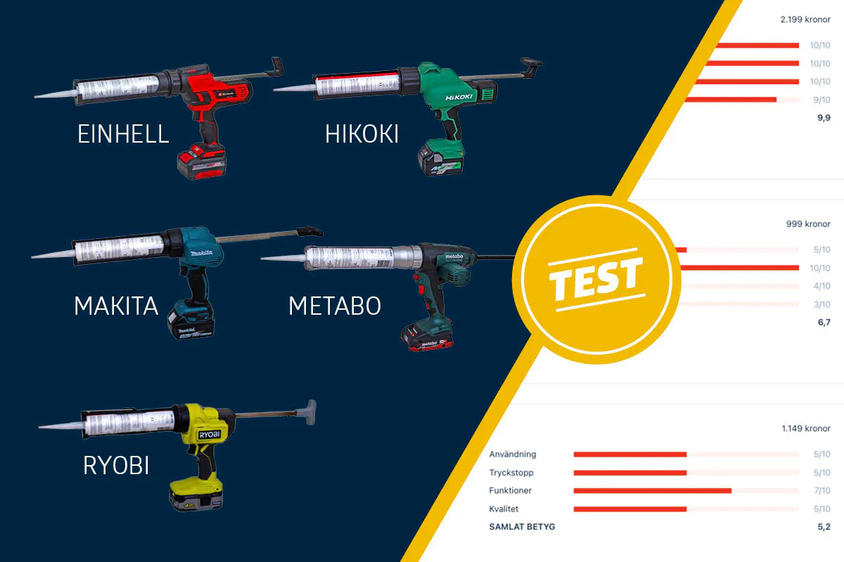 Vi har testat några fogpistoler som är relevanta för gör-det-självare. Det är ganska stor skillnad i pris, och generellt sett går pris och kvalitet hand i hand. Dock gör en deltagare oss rejält besvikna. Överraskande nog är detta den dyraste deltagaren i testet.