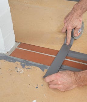 Markera på golvet var du ska bygga. Använd tejp, som är mycket lättare att se än ett blyertsstreck.