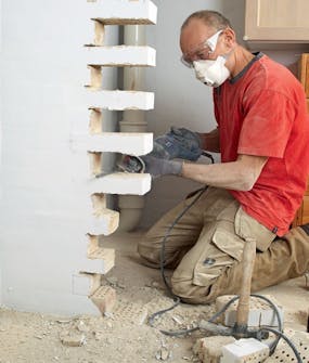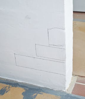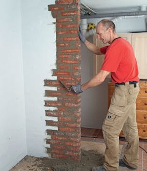 Välj de tegelstenar som ska tas bort och markera dem med blyertspenna på väggen. Syns de inte måste du knacka bort lite puts.