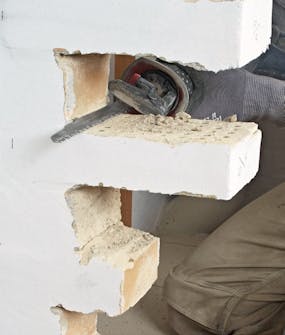 Såga bort fogbruket med en tigersåg och blad för tegel och bruk. Såga ända in till bakkanten på de stenar som ska tas bort.
