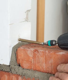 Murare använder t.ex. murhakar och armeringsjärn, men det går också att använda sig av långa och kraftiga skruvar eller rent av en bit av ett armeringsnät. Här visar vi hur det går till att förstärka med skruvar. Det går åt en skruv till varje skift.