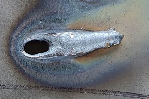 En för snabb rörelse resulterar i en tunn och svag svetsfog, medan en för långsam rörelse kan orsaka för mycket värme och du riskerar att bränna igenom materialet.