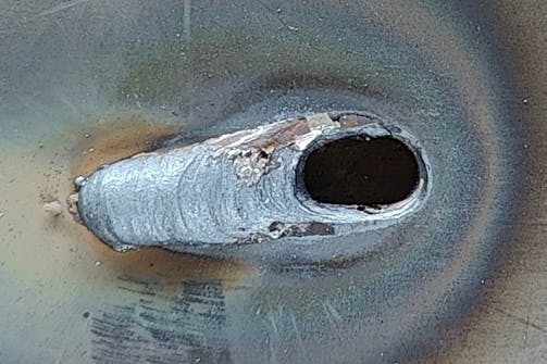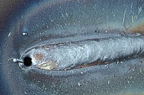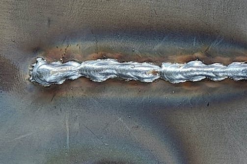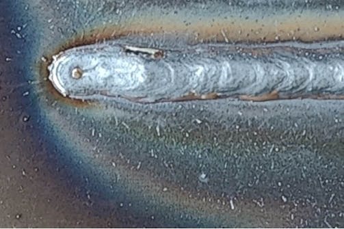 Så här ser en bra svetsfog ut. Den är jämn, halvcirkelformad och har smält fast väl i metallen. Det senare säkerställer att den har ett bra fäste och aldrig går isär.