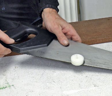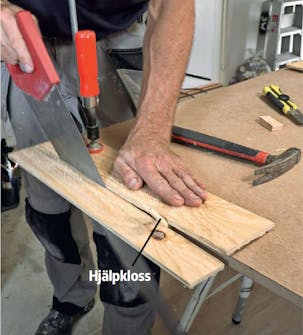 Ska du såga en mindre träbit på längden med en fogsvans, är det lätt att sågen fastnar. Det gör att sågandet går hackigt, och det finns det ju inte någon anledning till när det är lätt att undvika. Du sätter bara en liten kloss mellan de två halvorna trä når du har sågat en bit genom träet. Klossen ger större utrymme i sågspåret, så att sågen nu obesvärat kan arbeta sig genom träet.