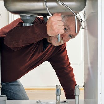 När du drar åt kopplingen mellan de två rören behöver du en extra nyckel att hålla emot med. När du har dragit åt ska du kontrollera att kopplingarna håller tätt. Pressas det ut lite vatten, kan du dra åt kopplingarna lite till. Då blir det tätt.