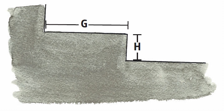 En stentrappa kan förefalla självklar, varför det kan vara frestande att bygga den efter ögonmått. Vår rekommendation är dock att du använder dig av trappformeln: G + 2 x H = 63. G står för gång och anger stegdjupet, medan H anger höjden. Dessutom bör höjden inte överstiga 18 cm.