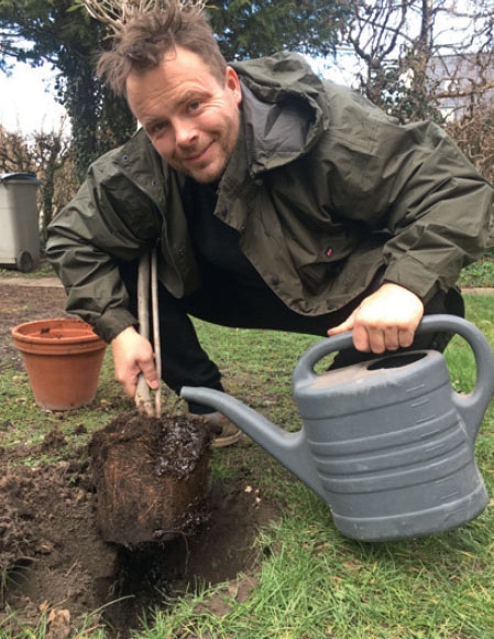 10. Sätt trädet i samma höjd som det har stått i krukan - alltså i den höjd som nederst på stammen kan ses som en färgskillnad. Det är viktigt att du inte sätter trädet för djupt, eftersom barken inte tål att vara konstant fuktig.