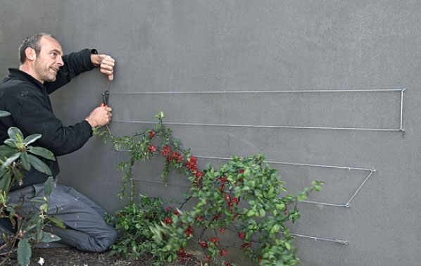 Har klätterväxten kommit på avvägar, kan du enkelt hjälpa den rätt igen med en spaljé av trådar fästa på väggen.