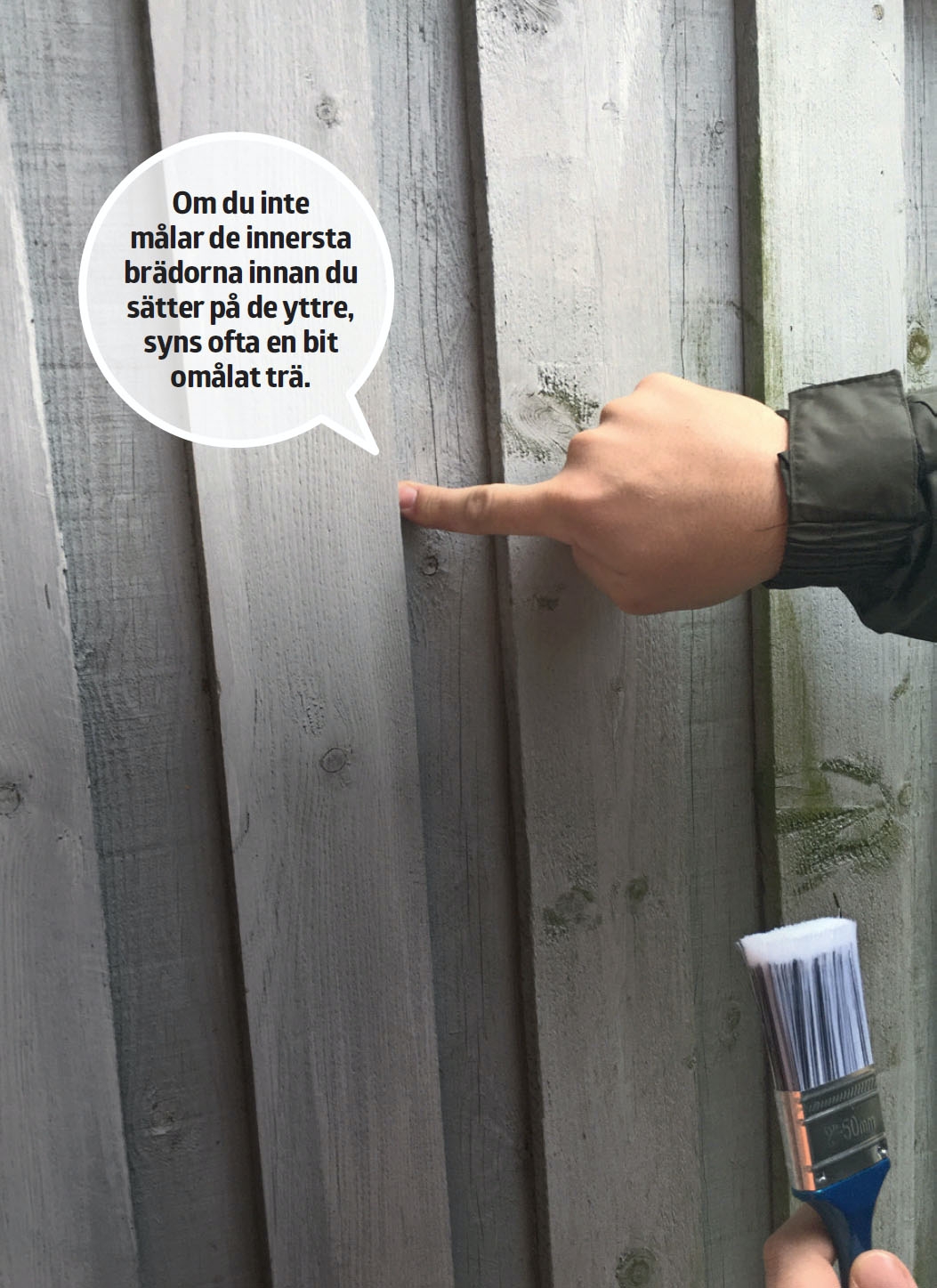 Om du klär ditt plank eller fasad med lockpanel eller locklist, är det bäst att måla det innersta lagret med brädor innan de övre brädorna eller locklisterna spikas fast. Om du målar först när allt sitter på plats, kommer smala ränder av omålat trä med största sannolikhet att dyka upp, när träet torkar och krymper.