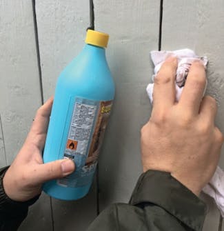 Du kan lätt kolla vilken slags färg som använts på en yta, genom att hälla lite teknisk sprit på en trasa. Kan du gnida av färgen, är den vattenbaserad. Om det inte går, är det en oljefärg.