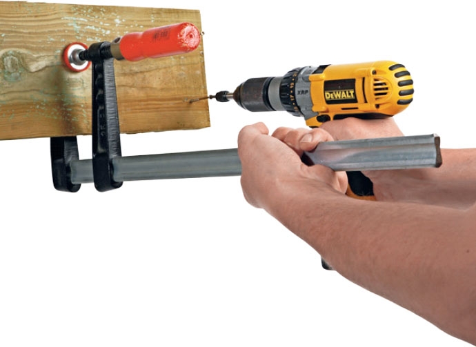 Ska du sätta upp en bräda som slagit sig, kan du vrida den på plats med en lång skruvtving innan du skruvar.