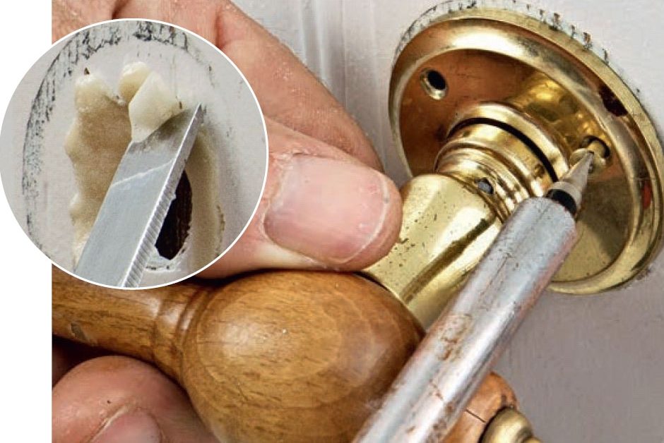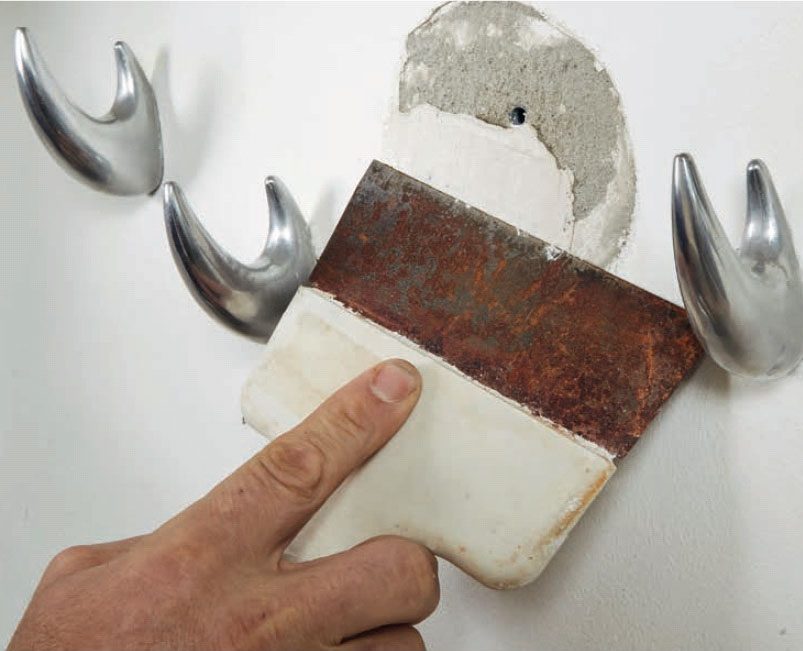 Ta bort all lös puts och färg, och borra därefter hålet större och djupare. Tryck in den nya pluggen i hålet, så att den kommer i nivå med väggen. Det är viktigt att du borrar i sten, så pluggen sitter helt stadigt.