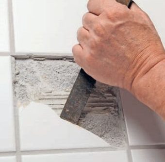 For att kunna komma till med hammare och mejsel behöver du kratsa ut lite av fogen. Det kan göras antingen med en manuell fogrensare eller ett multiverktyg.