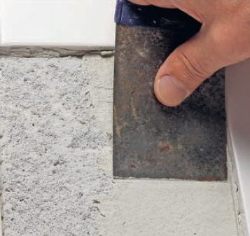 Ta bort golvlisten och bänd upp tröskeln med en kofot, så att du kan lägga en bit plywood, masonit eller ett par plastbitar på det befintliga underlaget.