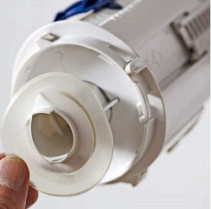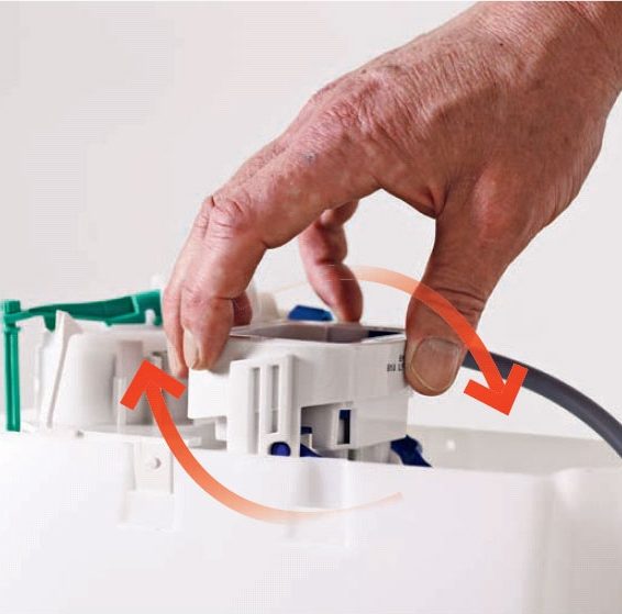 Avlägsna cisternens lock och vrid utloppsventilens topp medurs ett kvarts varv. Du märker tydligt när det lossnar.