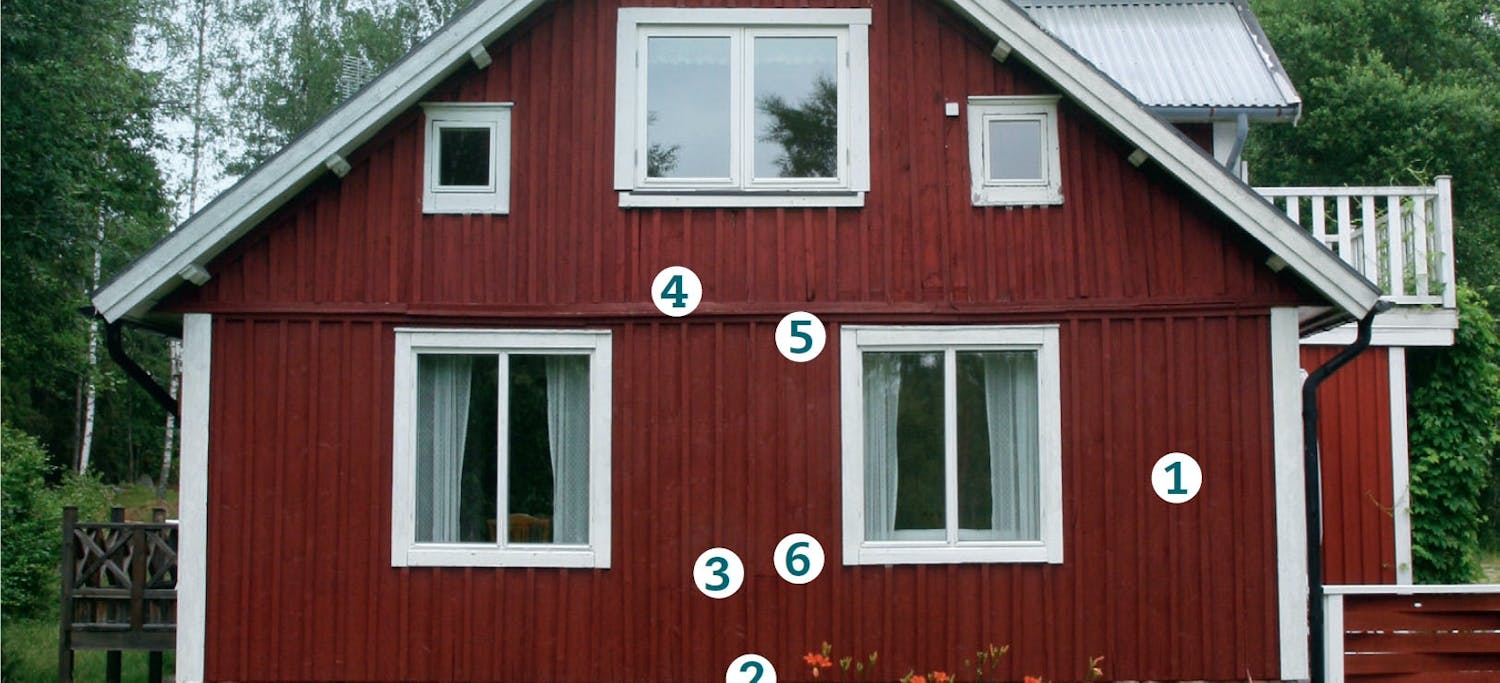 Ett annat genomgående fel är att vattnet på flera ställen leds in bakom fasadpanelen där det snabbt sugs upp medan det tar lång tid att dunsta. Då bildas det röt- och svampangrepp.