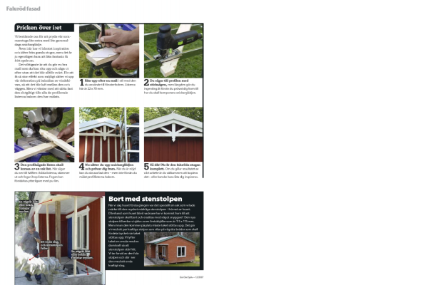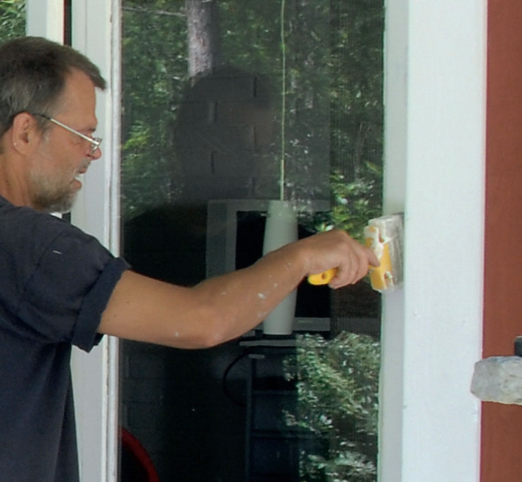 Man skall måla två gånger innan profillisten sätts upp. På så vis slipper du få vita, omålade ytor längs listerna om trävirket torkar och rör sig i sommarvärmen. Och det gör det!
