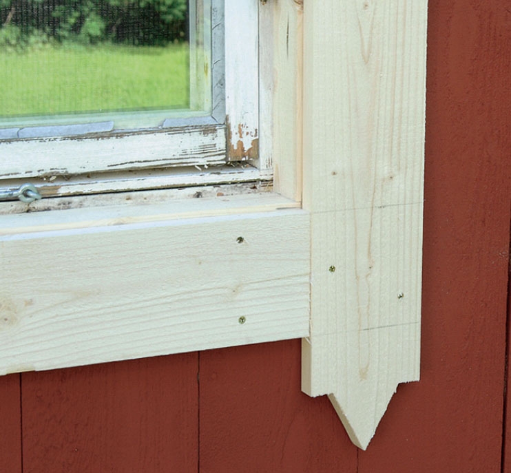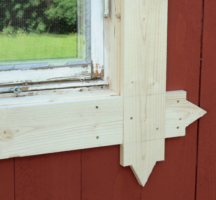 De vågräta fodren är helt raka. Men med en bit utsågad profil på utsidan av det lodräta fodret ser det ut som om listerna korsar varandra.