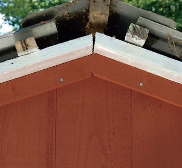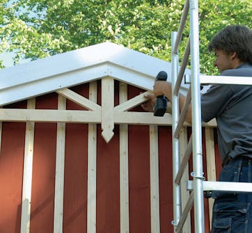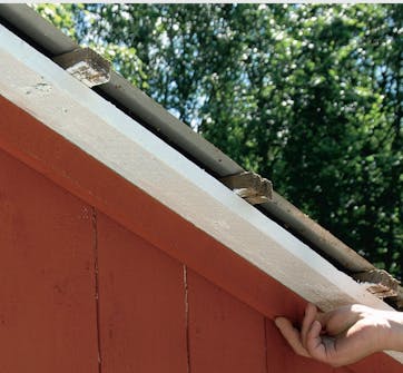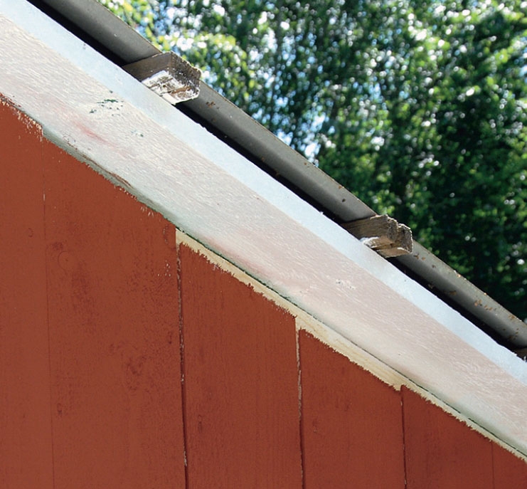 Vindskivorna skruvar vi fast. Då blir det lättare att ta ner dem när de skall målas igen eller bytas ut.