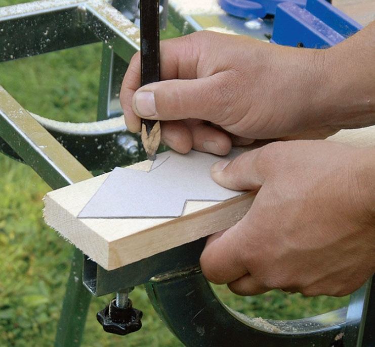 Du sågar till profilen med sticksågen, men längden gör du ingenting åt förrän du prövat dig fram till hur du skall komponera snickarglädjen.