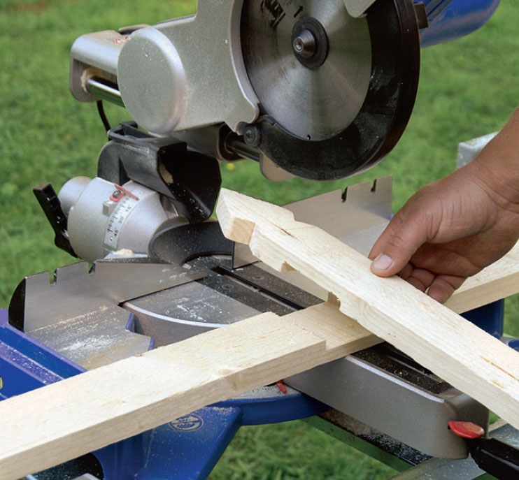 Den profilsågade listen skall korsas av en rak list. Här sågar du ner till hälften i båda listerna, stämmer ut och fogar ihop listerna. Fogen kan förstärkas ytterligare med pu-lim.