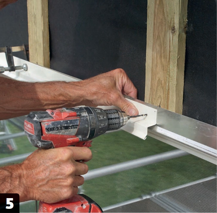 Nederst på det nya underlaget sätts aluminiumprofiler. Först en ventilationsprofil som håller insekter ute. Utanpå den en vit dropprofil som leder bort vattnet. Förborra innan du fäster med aluminiumspik.