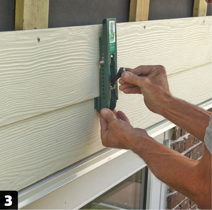 Arbetar du ensam är det en bra idé att använda en speciell hållare för montering av brädorna. Sätter du upp två hållare på en underliggande bräda lägger sig den nya brädan bara ovanpå och du har båda händerna fria för att finjustera och fästa.