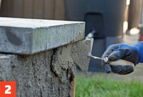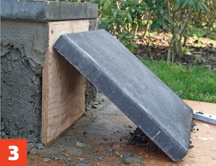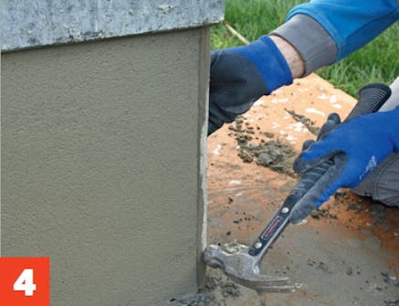 Räta upp skivan, så att den står lodrätt, och rätta till den så att kanten stämmer med det lager bruk du vill lägga på sockeln.