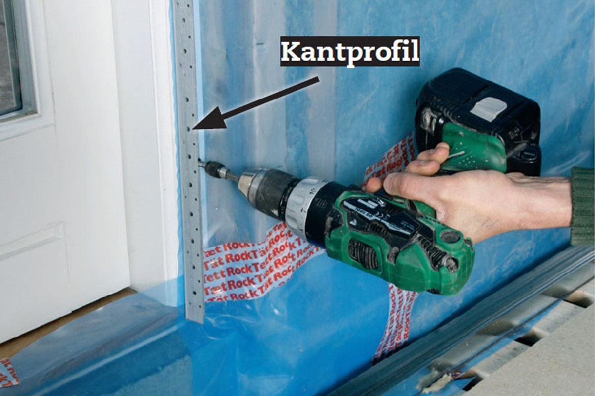 Mot en dörr- eller fönsterkarm ska du använda en specialprofil. Dels håller den in ångspärren mot karmen, dels är den fäste för den första gipsskivan - för den kan du ju inte fästa i isoleringen.