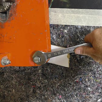 Spänn fast borret. Det stora borret ska spännas fast på borrmaskinen. För detta krävs en nyckel. Dra åt ordentligt.