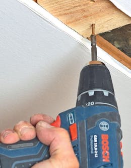 Skruva fast biten i bjälkarna med en 40-50 mm lång skruv. Börja med att borra upp ett hål så att skruven kan försänkas.