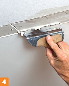 Tryck upp spackelmassa i sprickorna. Spackla ytterligare 2-3 gånger utan slipning, tills lagningen är i nivå med taket. Avsluta med en lätt slipning.