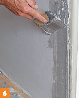 På väggen ska du först ta bort rester av bruk, armering och annat som sticker fram. Du kan antingen slipa eller såga bort ojämnheterna.