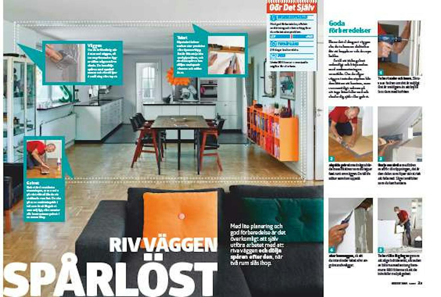 Se till att täcka golvet ordentligt och börja sedan med nedmonteringen ovanifrån. Om du sågar väggen i mindre stycken blir den lättare att hantera, men var samtidigt vaksam på att inga bitar faller ned och skadar dig själv eller golvet.