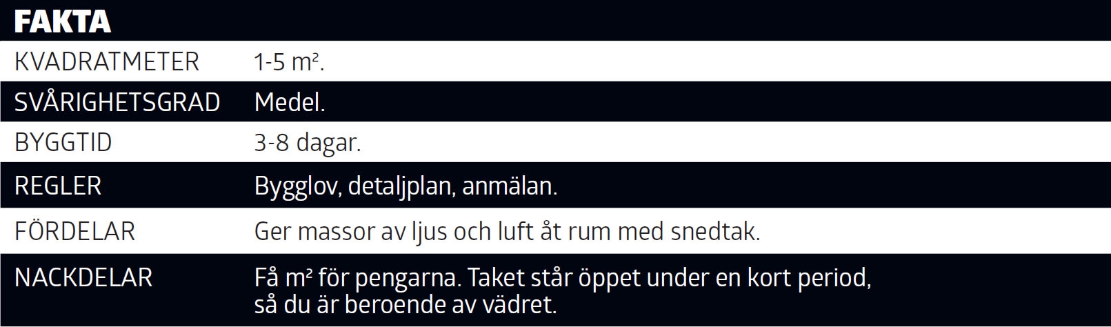 En kupa ger mer plats på översta våningen. Men även om det bara är få kvadratmeter som bostaden utvidgas med, måste du ändå kontakta kommunen om bygglov och kontrollera detaljplanen. Du måste vara en rutinerad gör det självare om du vill bygga kupan själv. Å andra sidan är det hyfsat enkelt att montera en fabrikstillverkad kupa. I de flesta fall måste minst en takstol tas bort. Det innebär att det behövs en så kallad avväxling i takkonstruktionen. Den ska en fackman räkna ut åt dig.