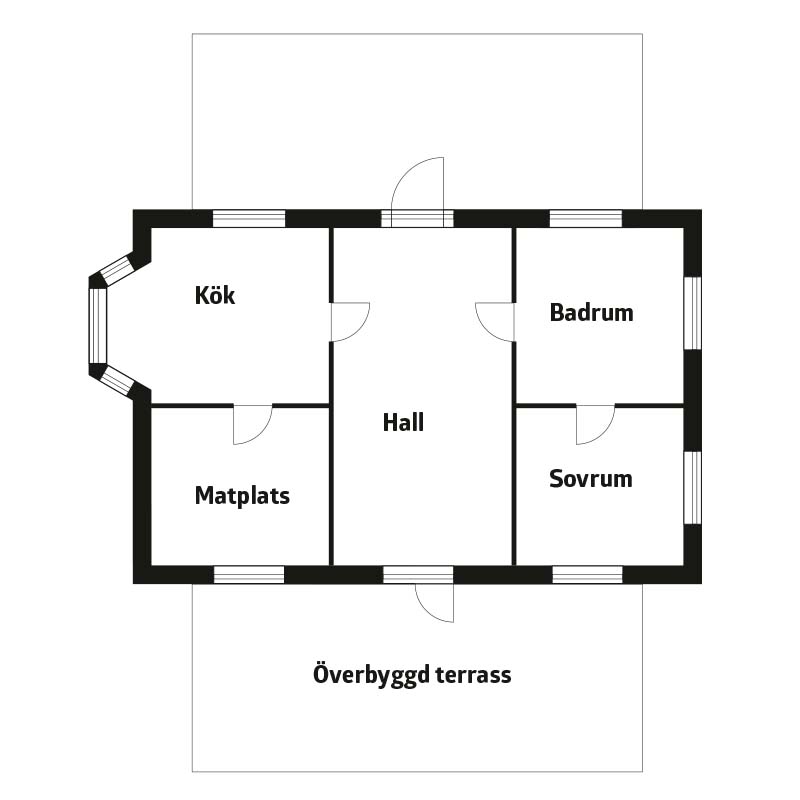 Det saknas ett extra sovrum i huset till övernattande gäster. Eftersom den överbyggda terrassen ändå inte används så mycket, så offras den.