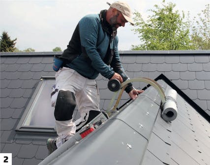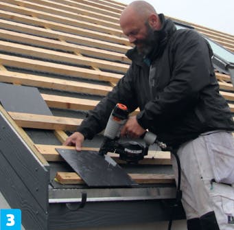 Köp en spikpistol. Det ska sättas i riktigt många spik i ett skiffertak. Fundera på att investera i en kompressor och en rundban-dad spikpistol för tryckluft. Då går arbetet betydligt snabbare.