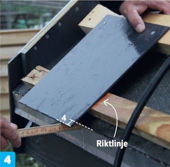 Underkanten markeras där takhuven ska placeras. Takhuvens sockel motsvarar precis en skifferplatta.