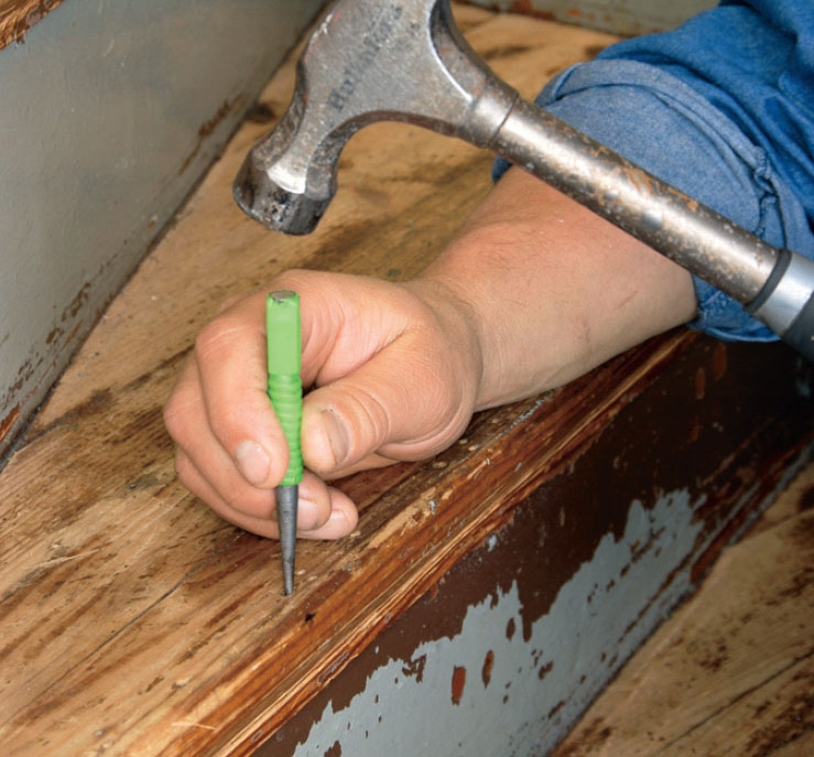 Spikar och annat som du inte kan dra upp slår du ner ordentligt med en puns. Använd en smal sådan så att hålet blir så litet som möjligt.