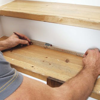 Börja med att mäta varje trappsteg. Även om trappan är fabrikstillverkad och stegen därför borde vara exakt lika stora, så kan du inte lita på det. Mät noga längd och bredd, för även små skillnader syns tydligt när du är klar.