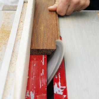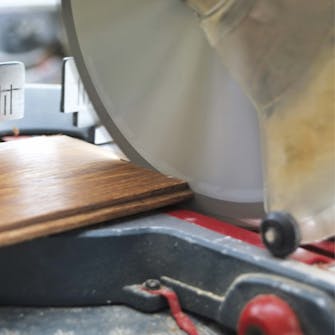 Brädorna kapas på längden och eventuellt på bredden enligt dina mätningar. Sågningen går snabbast och blir mest exakt om du har en kap-och geringssåg. Du kan annars klara dig med fintandad geringssåg, men det tar tid.