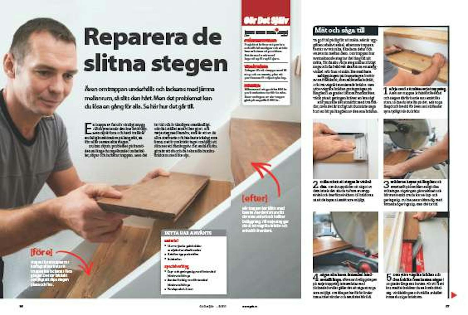 När du har mätt och sågat till brädorna (och kollat att de passar där de ska ligga), är det dags för den trevliga delen av jobbet: att limma fast stegen.