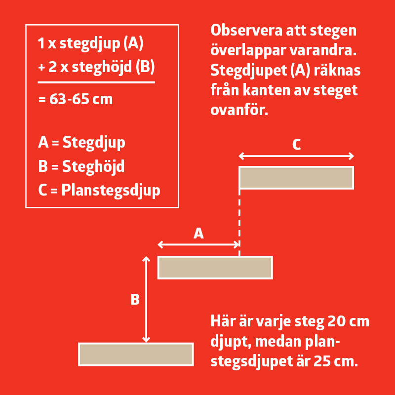 Rita in trappstegen. Varje steg består av tre 45 x 95 mm reglar med 6 mm mellan-