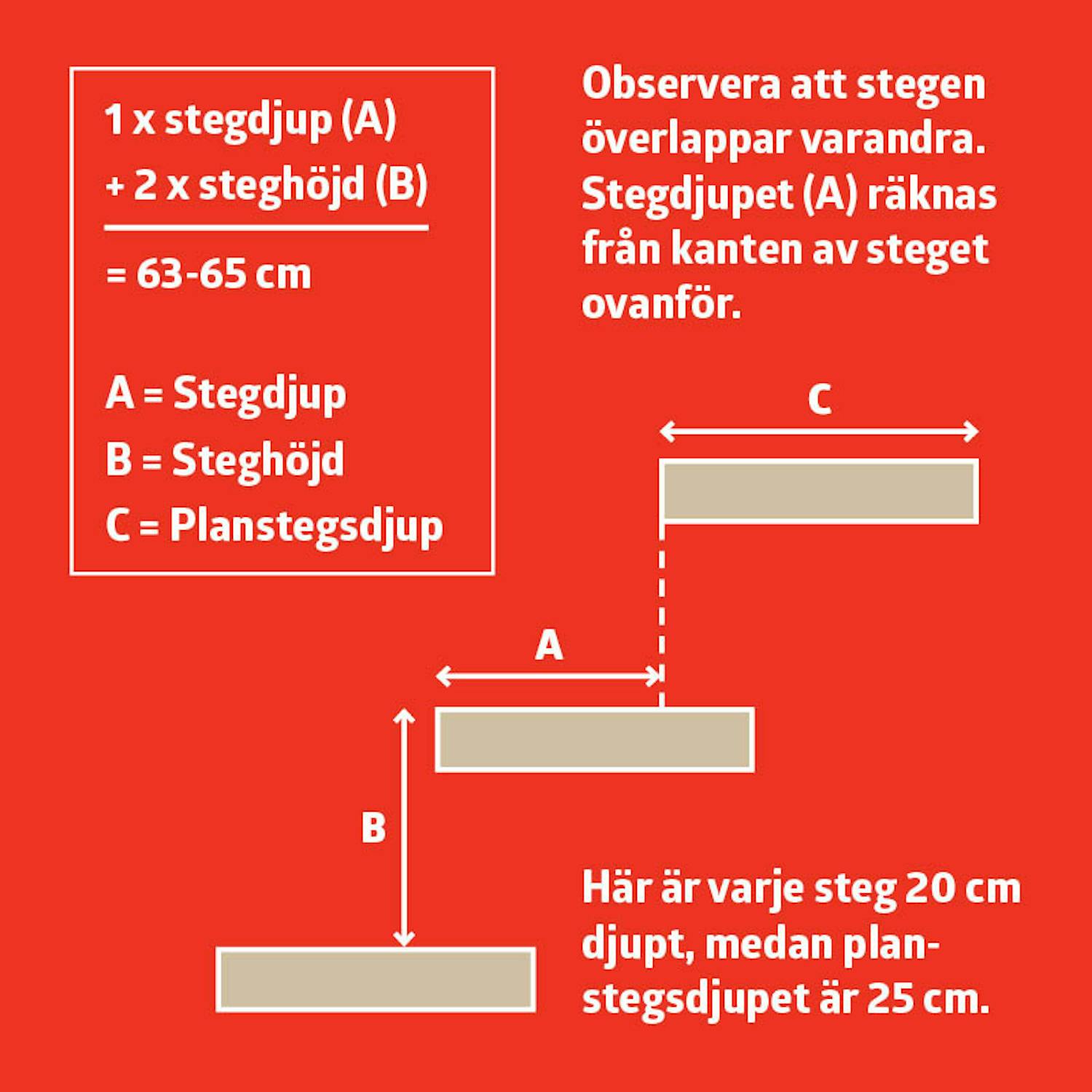 rum (totalt 30 cm). Rita det översta trappsteget in mot väggen, nästa steg 25 cm ut och det nedersta steget 50 cm från väggen.
