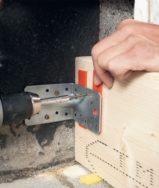Fäst vinkelbeslag på de två yttre vangstyckena, och fäst dem i sockeln så att de står stadigt.