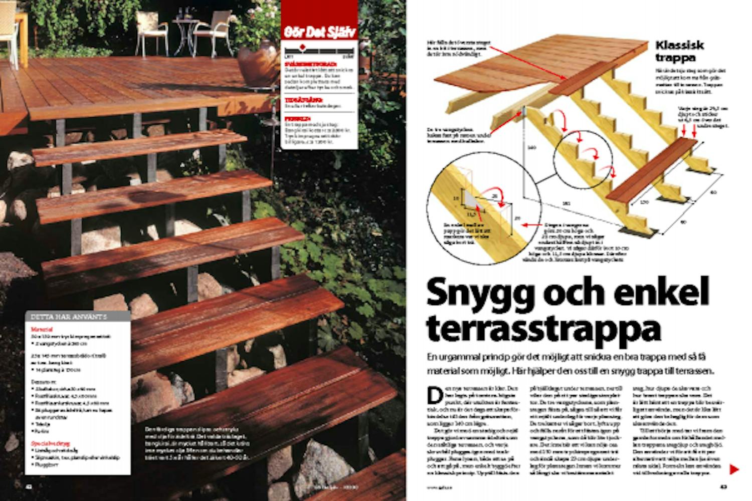 Det är relativt lätt att snickra en enkel trappa. Du kan sedan komplettera med detaljer efter tycke och smak.