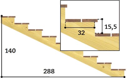 - 14 plansteg à 150 cm
