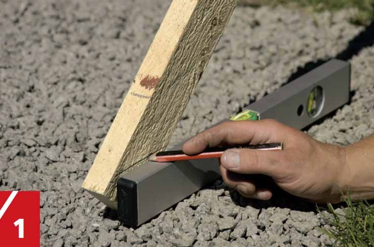 Innan du fortsätter med snickrandet kan du passa på att schakta bort lite jord där trappan skall stå. Lägg hellre singel eller andra småstenar. Singel dränerar mycket bättre än gräs och håller marken torr runt trappan. Dessutom är det ett mer hållbart underlag som inte kan slitas.
